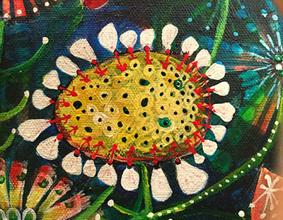 Painting mainly in oils and acrylics, I favour rich colour and pattern.